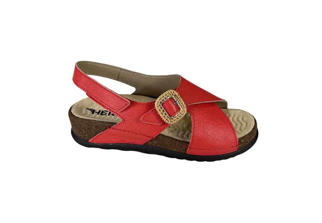 HERGOS Sandalo a incrocio in pelle con velcro