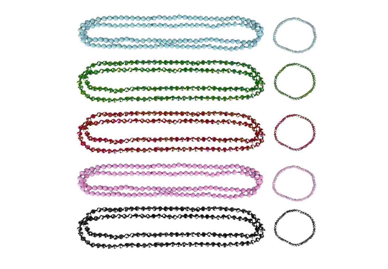 Parure collana endless+bracciale elastico in vari colori con rondelle sfaccettate
