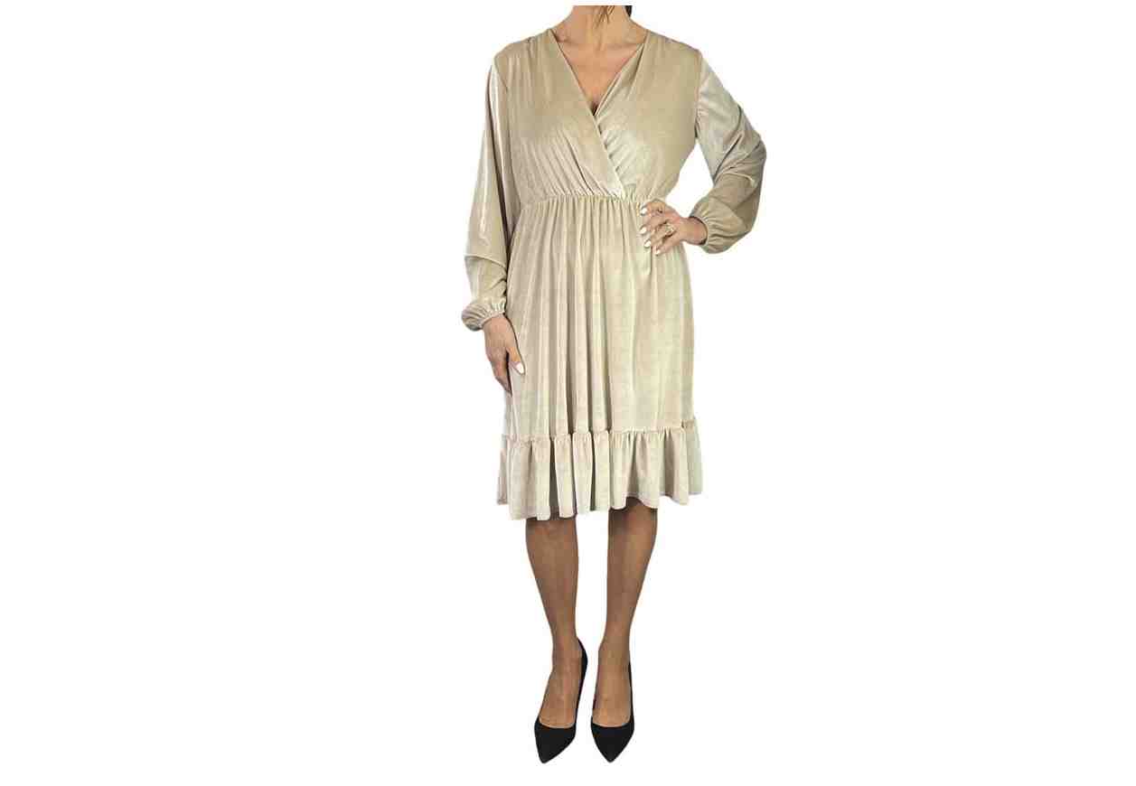 PINK LOVE Abito in tinta unita in simil velluto, scollo a V, elastico in vita e balza sul fondo.