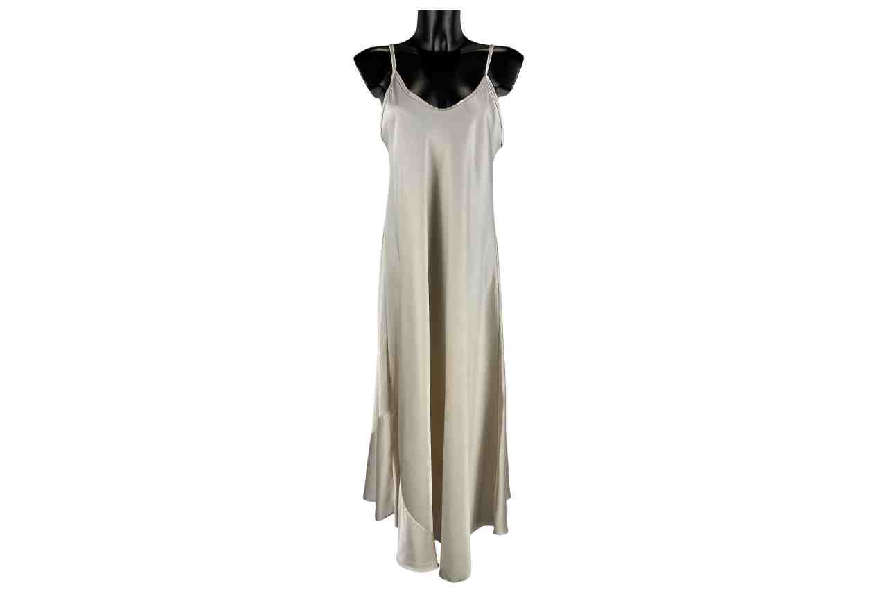 PINK LOVE Abito lungo in tinta unita in simil raso, smanicato con spalline sottili.