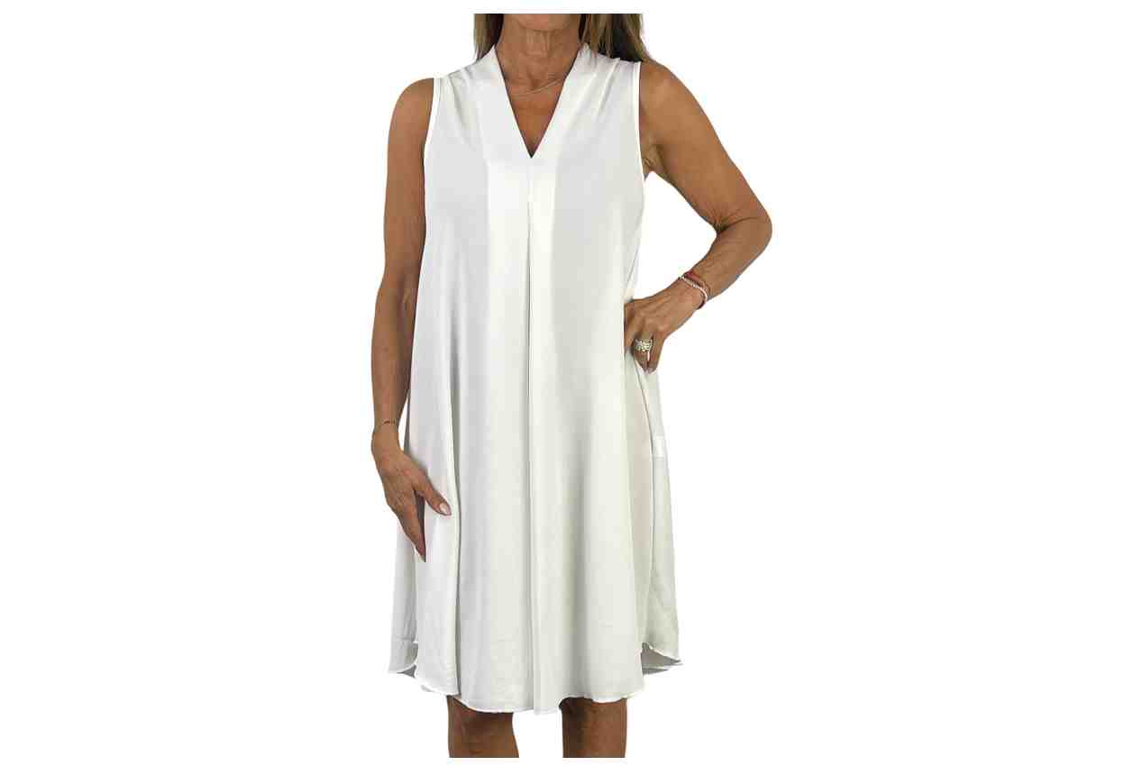 PINK LOVE Abito smanicato in tinta unita con scollo a V e pince frontale.