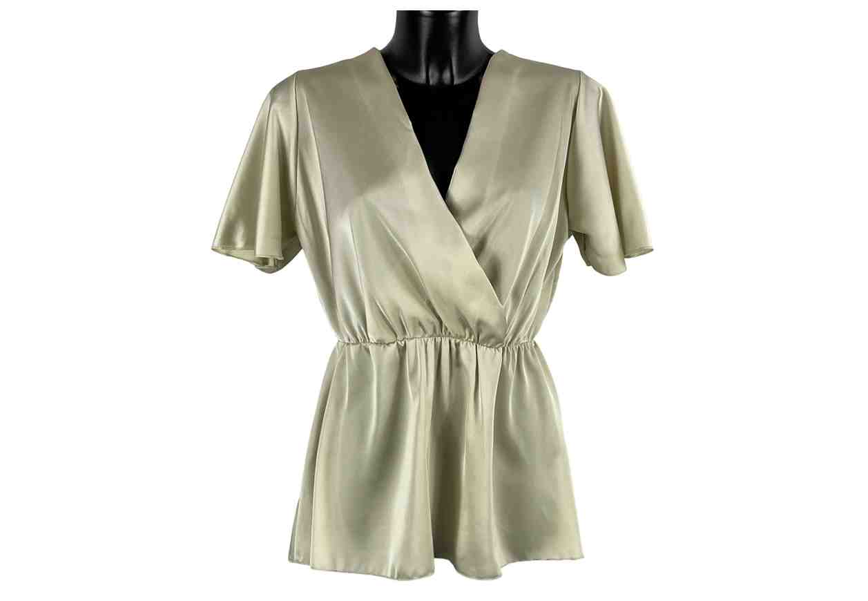 PINK LOVE Blusa in simil raso, scollo a V incrociato, elastico in vita.