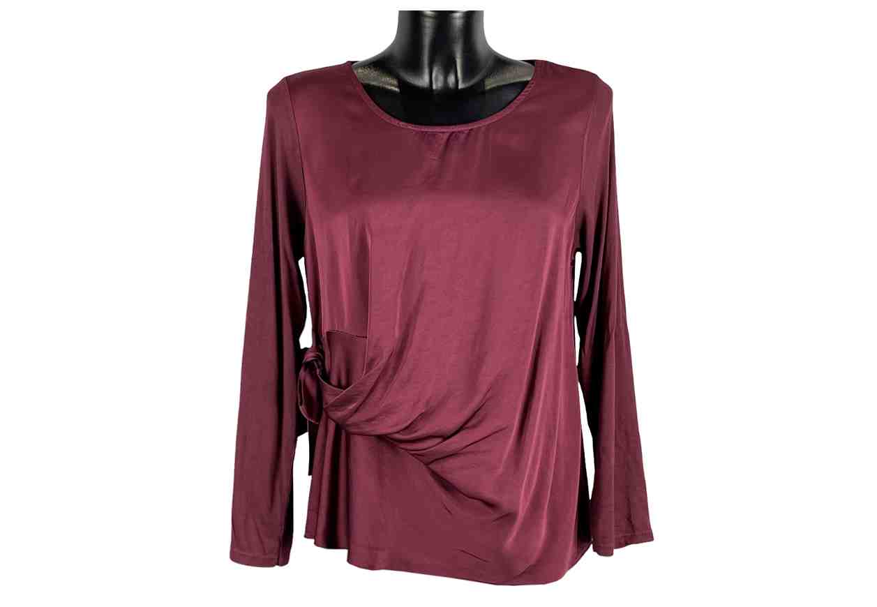 PINK LOVE Blusa in tinta unita con nodo laterale, girocollo e manica lunga.