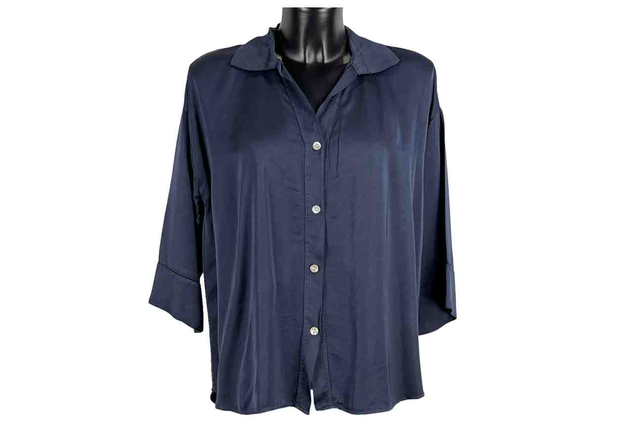 PINK LOVE Camicia in tinta unita in simil raso con maniche a 3/4