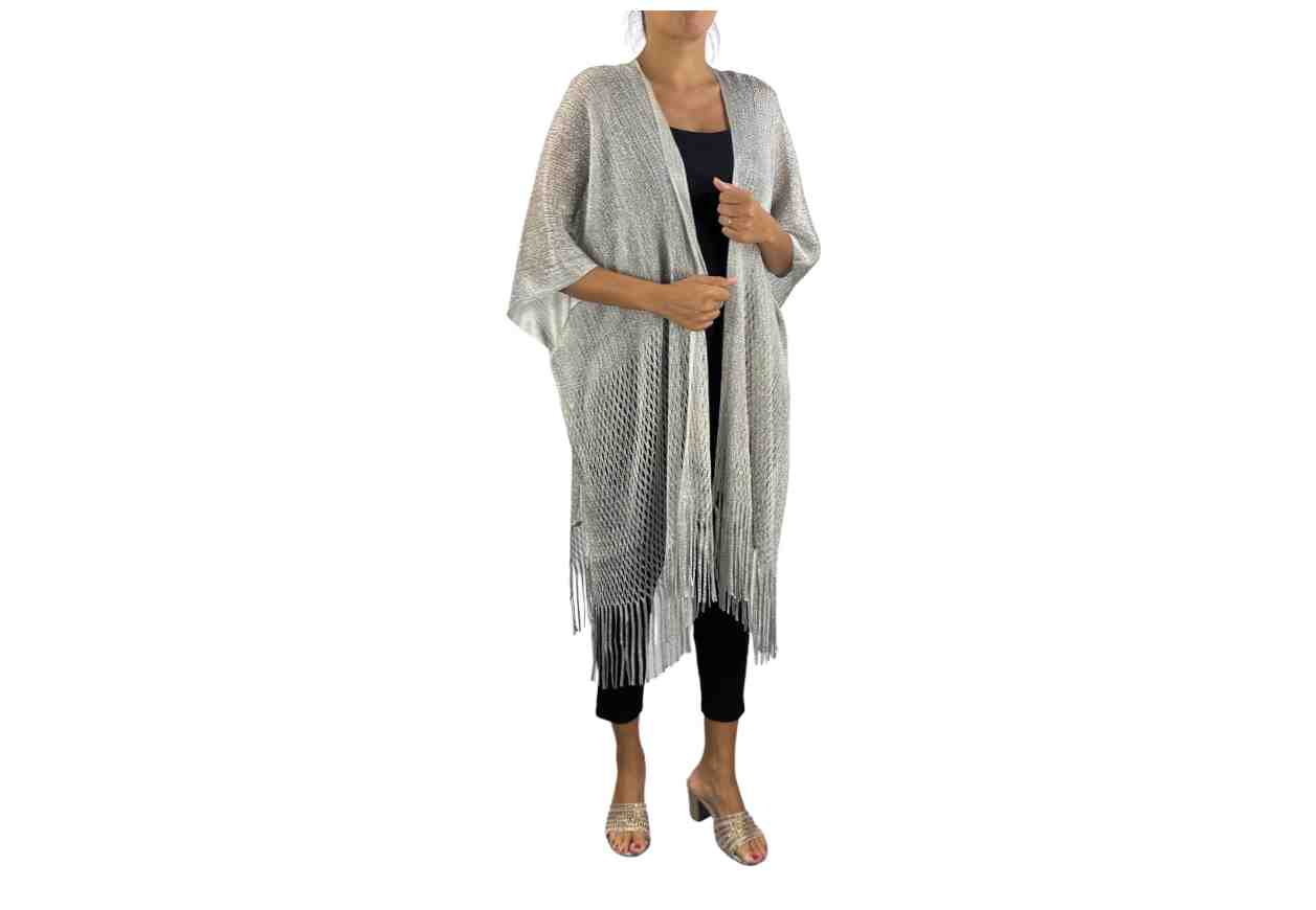 PINK LOVE Cardigan aperto in tinta unita, dettaglio filo lurex, frange sul fondo.