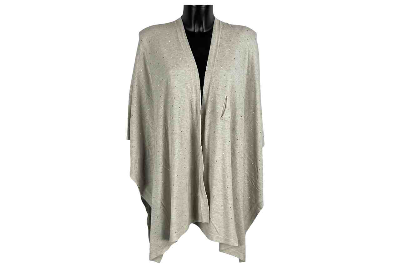PINK LOVE Cardigan mantella in tinta unita con strass frontali.