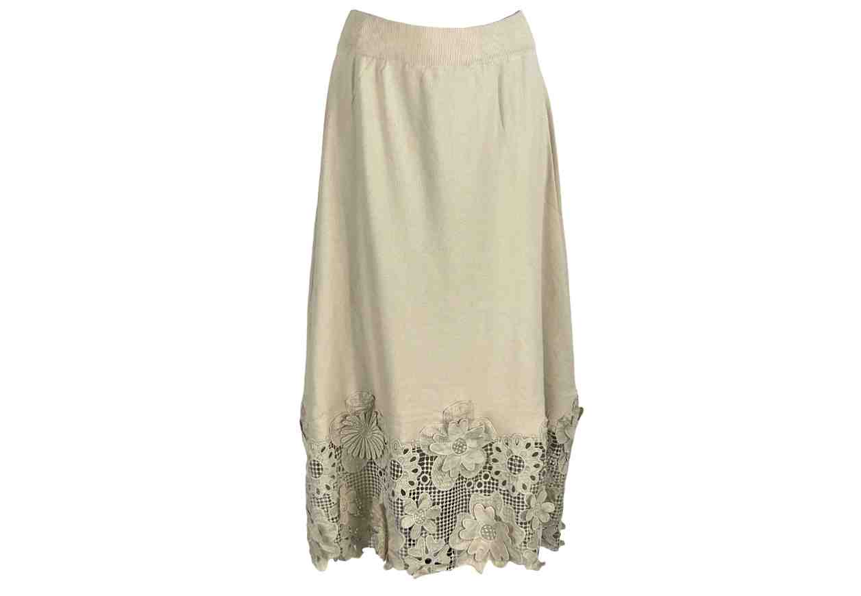 PINK LOVE Gonna in tinta unita con inserto in macramè sul fondo.