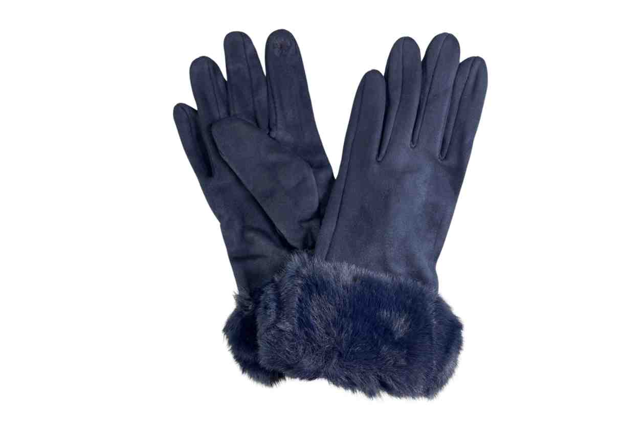 PINK LOVE Guanti in ecocamoscio, tinta unita, dettaglio in ecopelliccia.