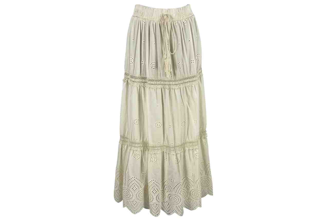 PINK LOVE LUX Gonna a balze in simil sangallo, elastico in vita.