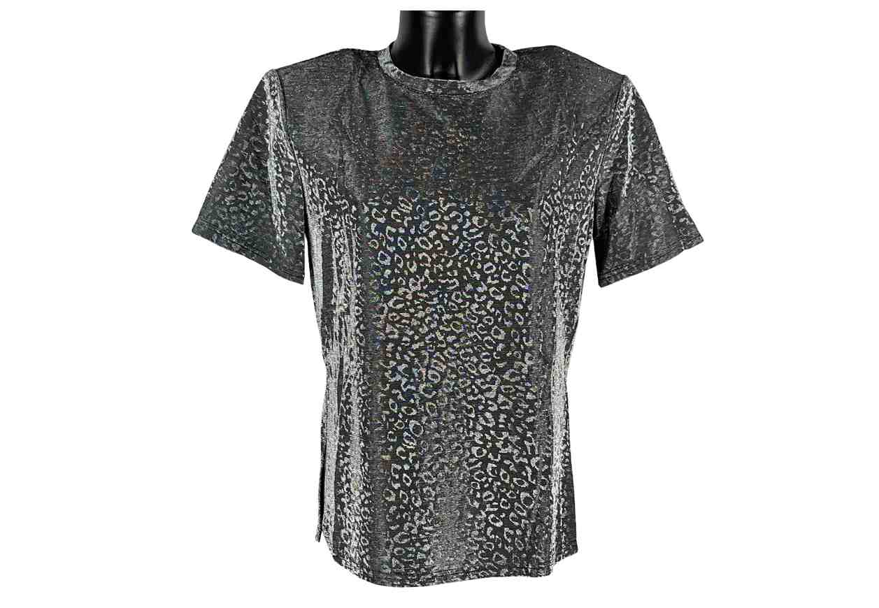 PINK LOVE LUX Maglia semitrasparente in fantasia leopardata, spacchi laterali e spalline imbottite.