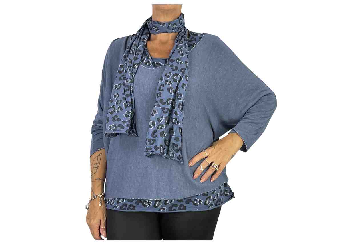 PINK LOVE Maglia in tinta unita con canotta maculata e foulard.