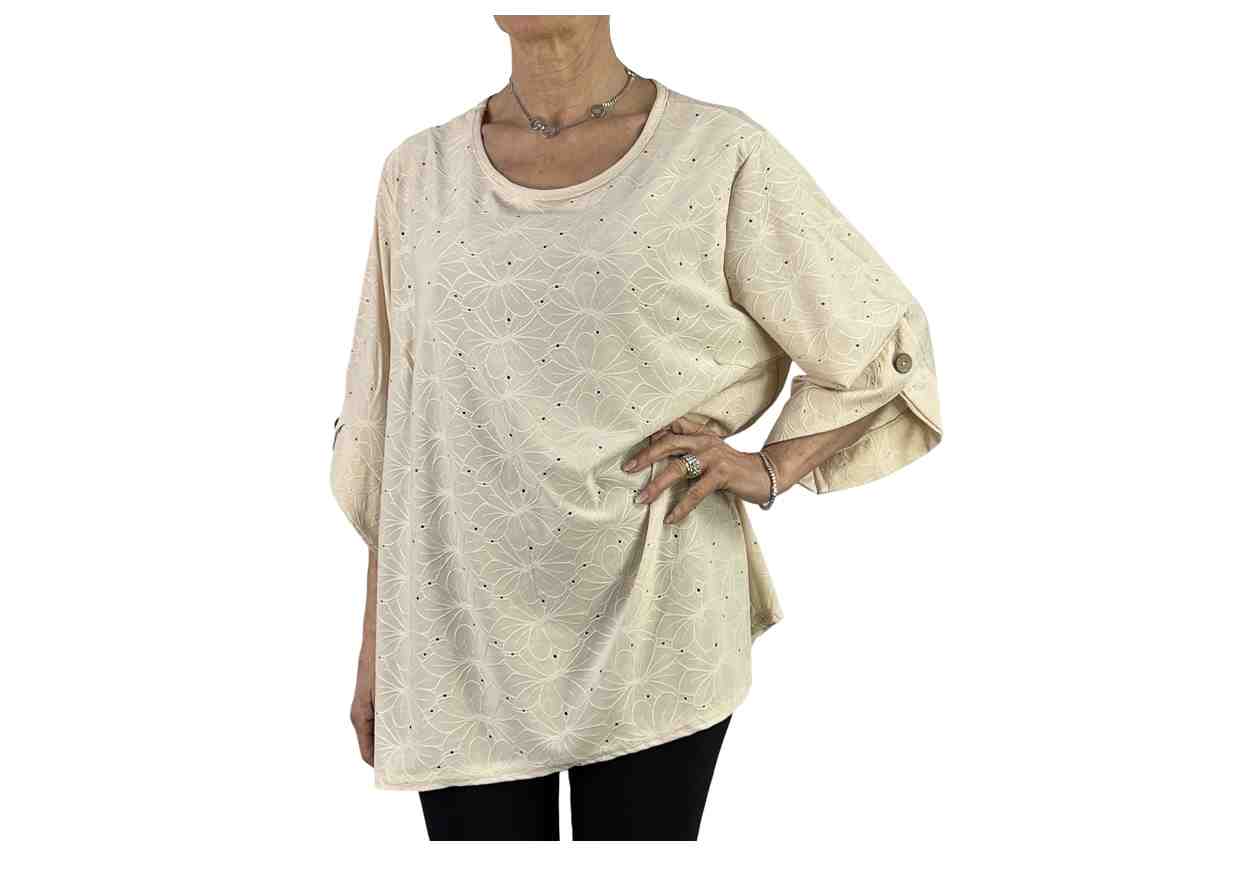 PINK LOVE Maglia in tinta unita con motivo fiori in rilievo, doppia lunghezza.