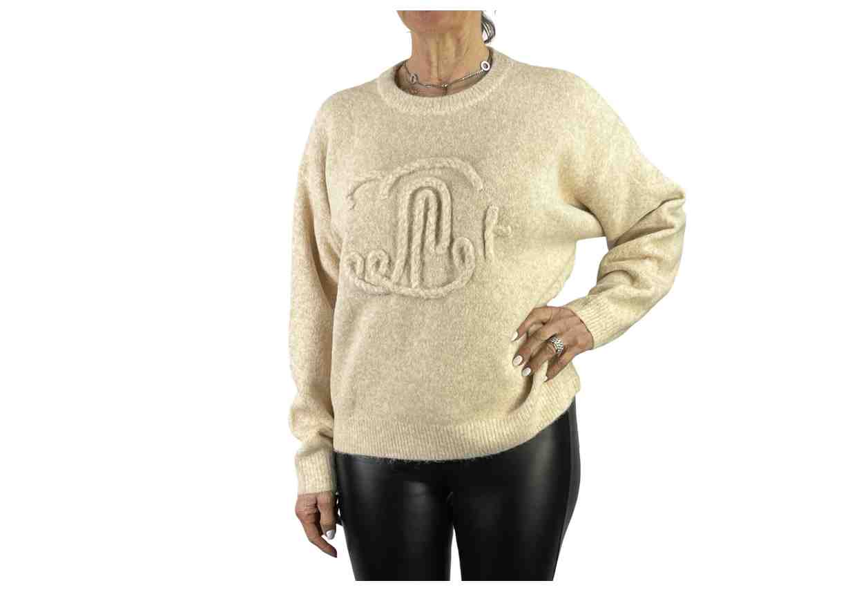 PINK LOVE Maglia in tinta unita in misto lana con motivo in rilievo, maniche lunghe.