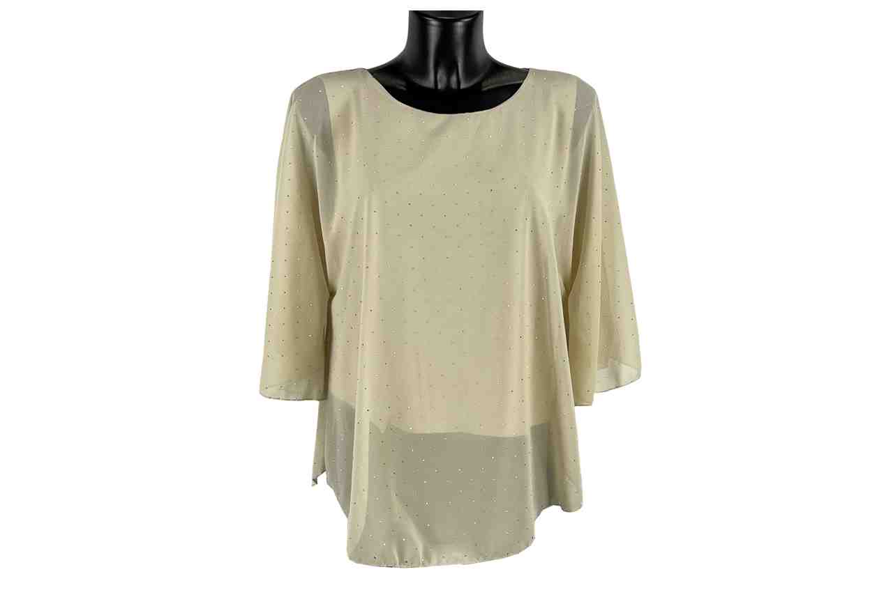 PINK LOVE Maglia in voile in tinta unita con strass in dettaglio, manica a 3/4 a campana.
