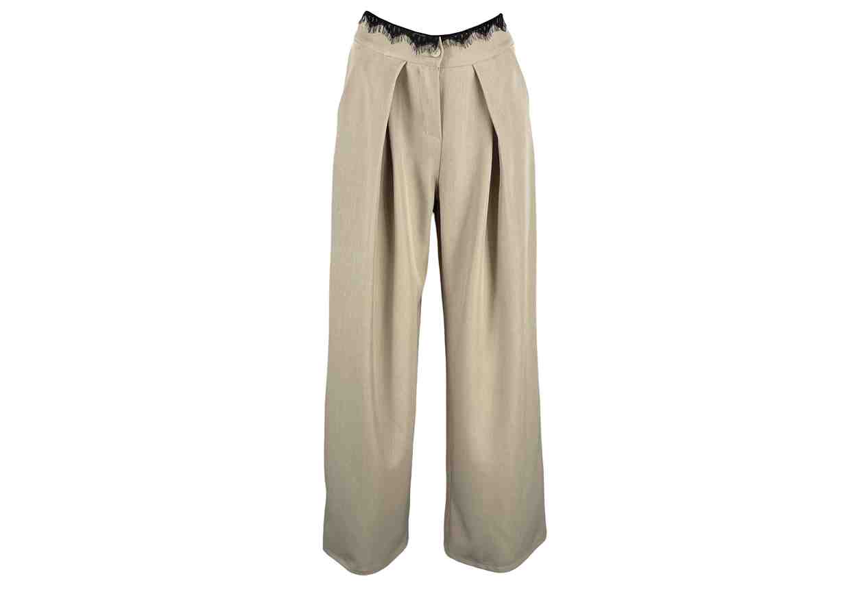 PINK LOVE Pantalone in tinta unita con inserto in pizzo vita, chiusura con bottone e zip.