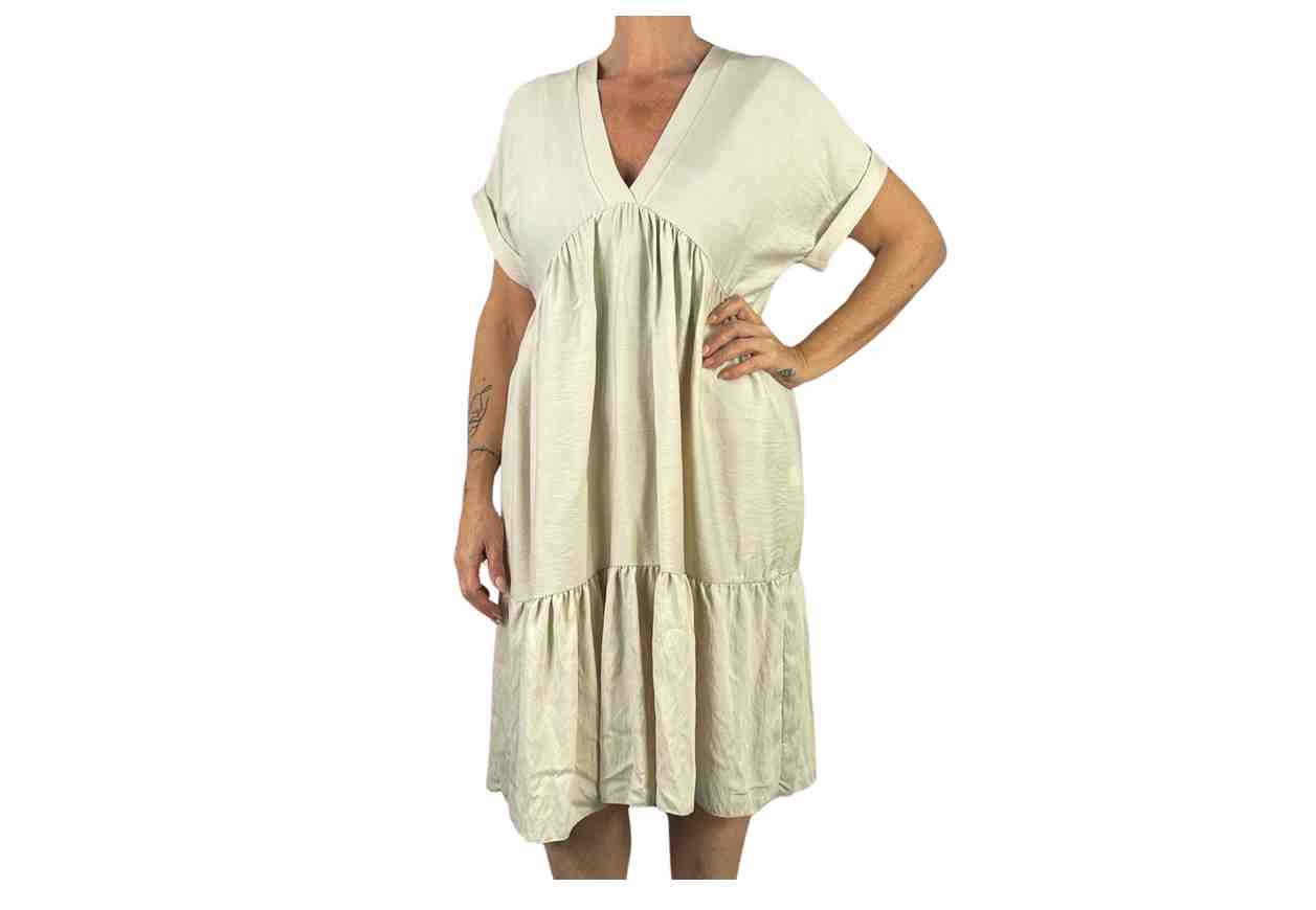 PINKLOVE Abito lungo in tinta unita con balza sul fondo, scollo a V, manica corta.