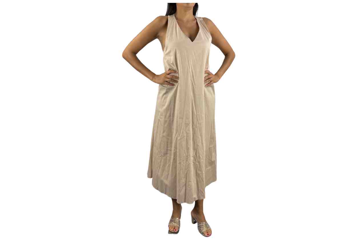 PINKLOVE Abito lungo smanicato in cotone, tinta unita con dettaglio sul retro.