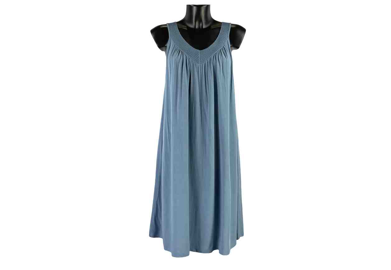 PINK LOVE Abito smanicato in tinta unita con inserto uncinetto su scollo e bretelle.
