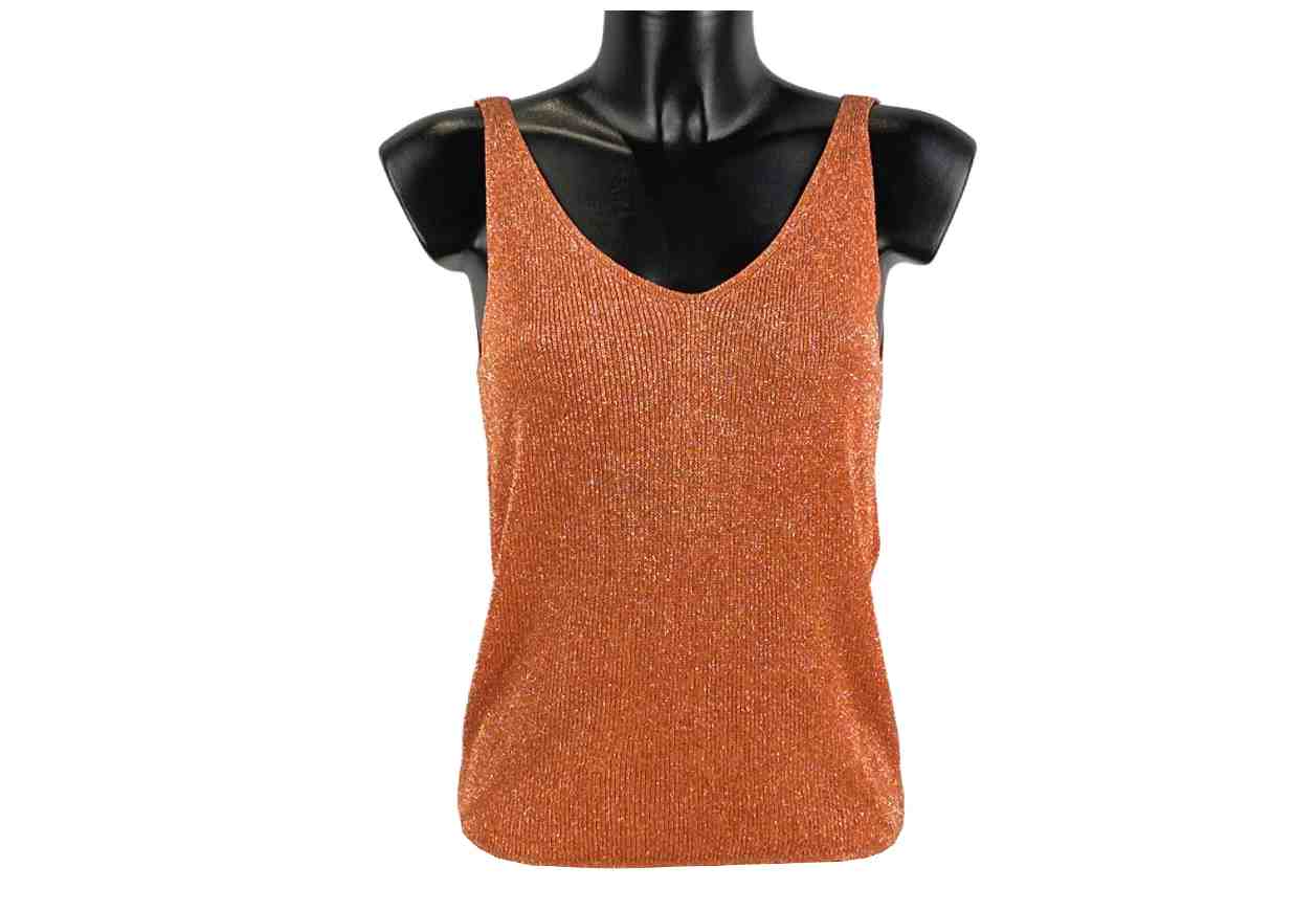 PINKLOVE Canotta in tinta unita con inserti in filo lurex, scollo a V.