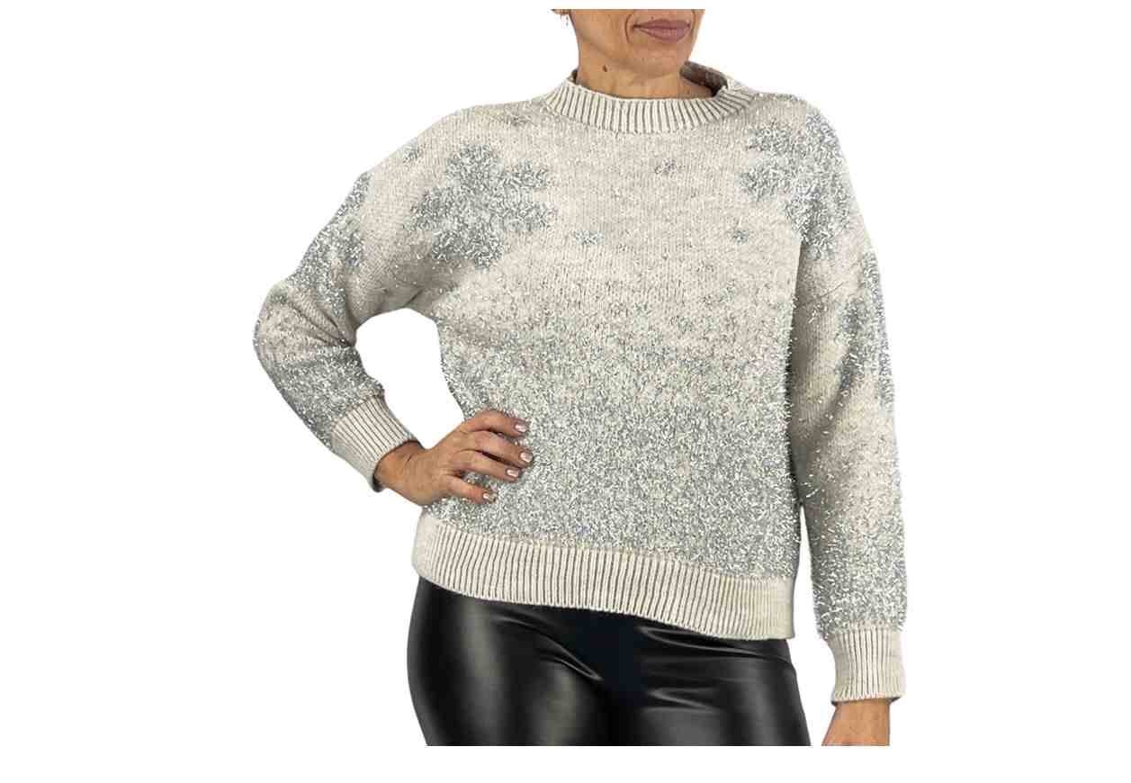 PINKLOVE Maglia in tinta unita con inserti in filo lurex, manica lunga.