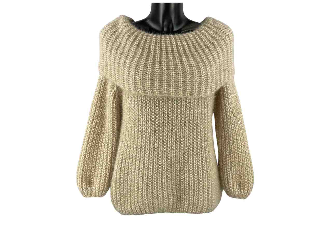 PINKLOVE Maglia in tinta unita effetto peluche con scollo bardot, elastico sul fondo.
