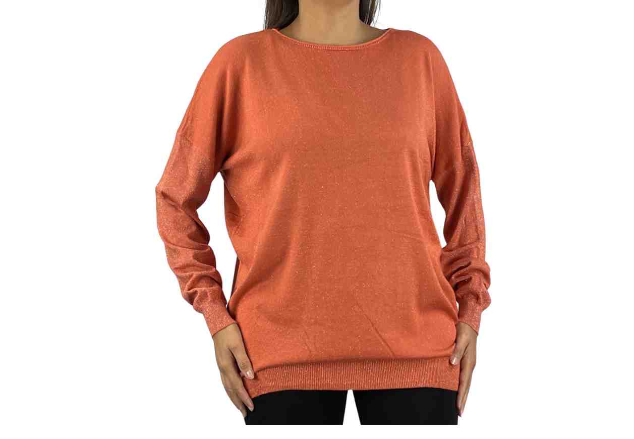 PINKLOVE Maglia in tinta unita in filo di lurex, scollo a barchetta, manica lunga.