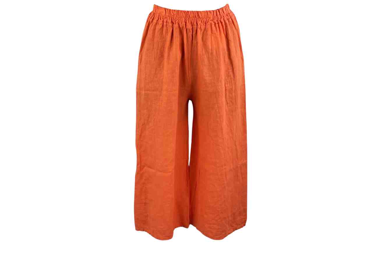 PINKLOVE Pantalone 100% lino modello pinocchietto in tinta unita.
