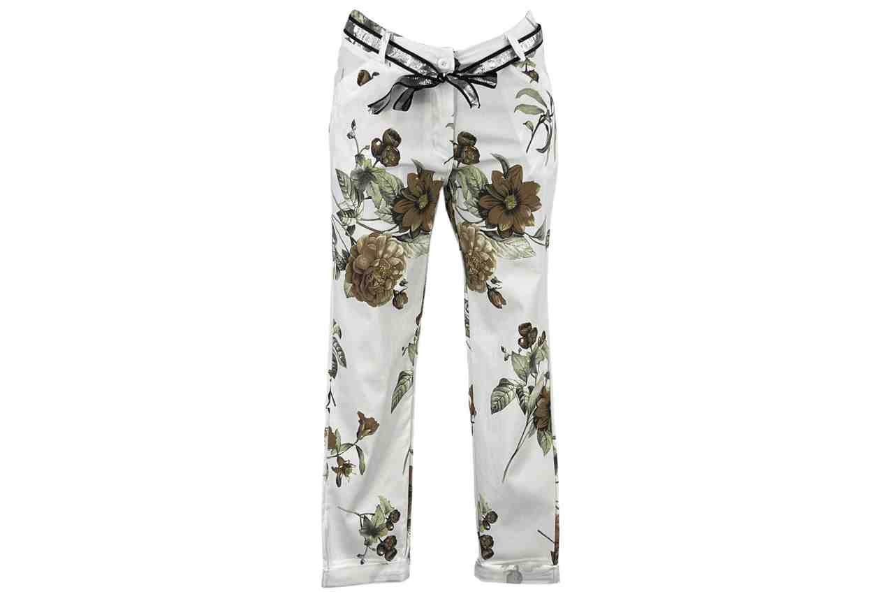 PINKLOVE Pantaloni in fantasia floreale, chiusura con bottone davanti e cintura in vita.