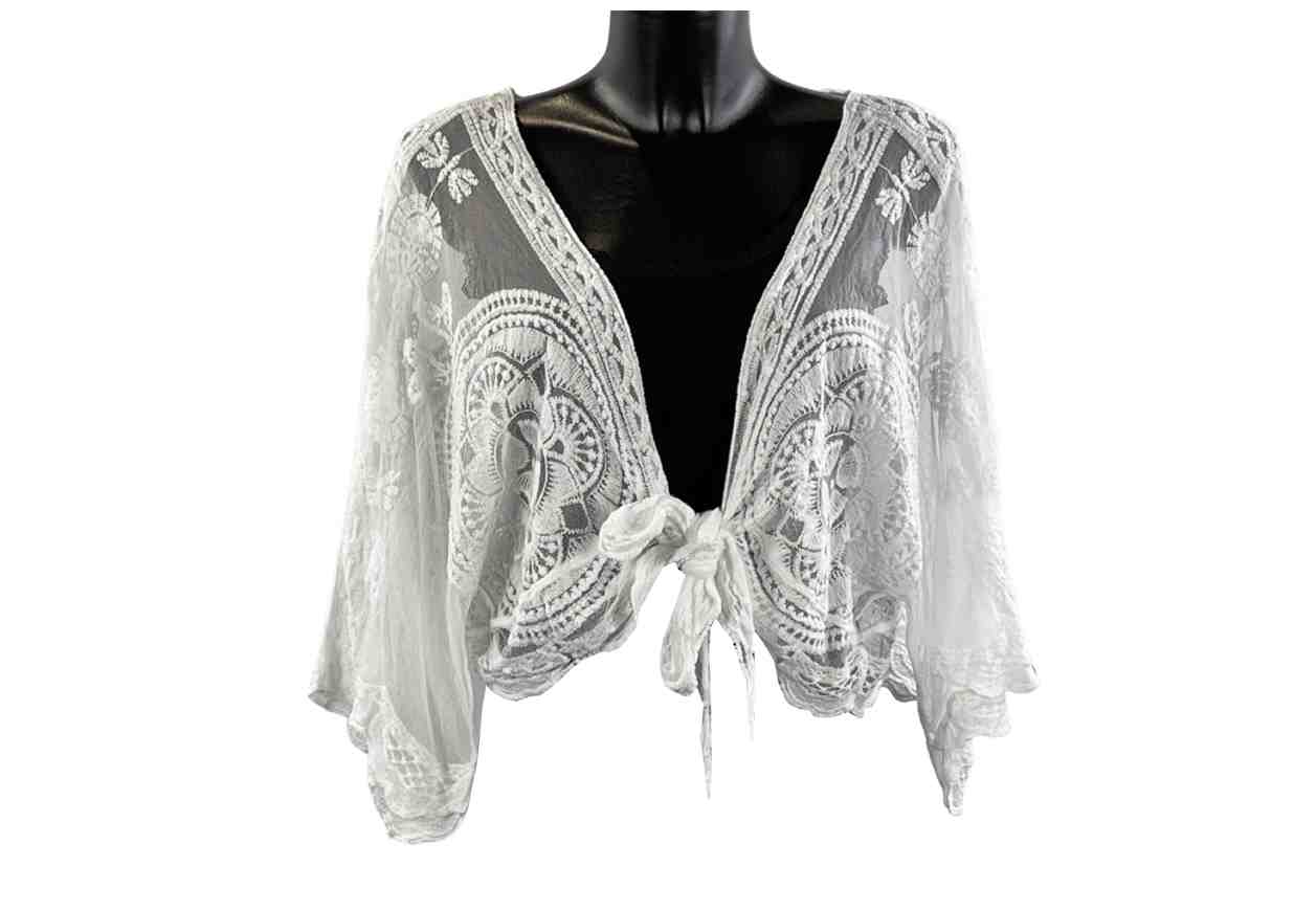 PL Coprispalle con trasparenze e dettagli ricamati, manica corta.