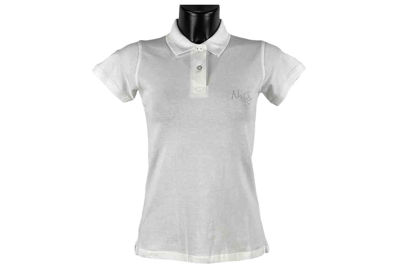Polo donna in 95% cotone, 5% elastan con logo in strass termosaldati.