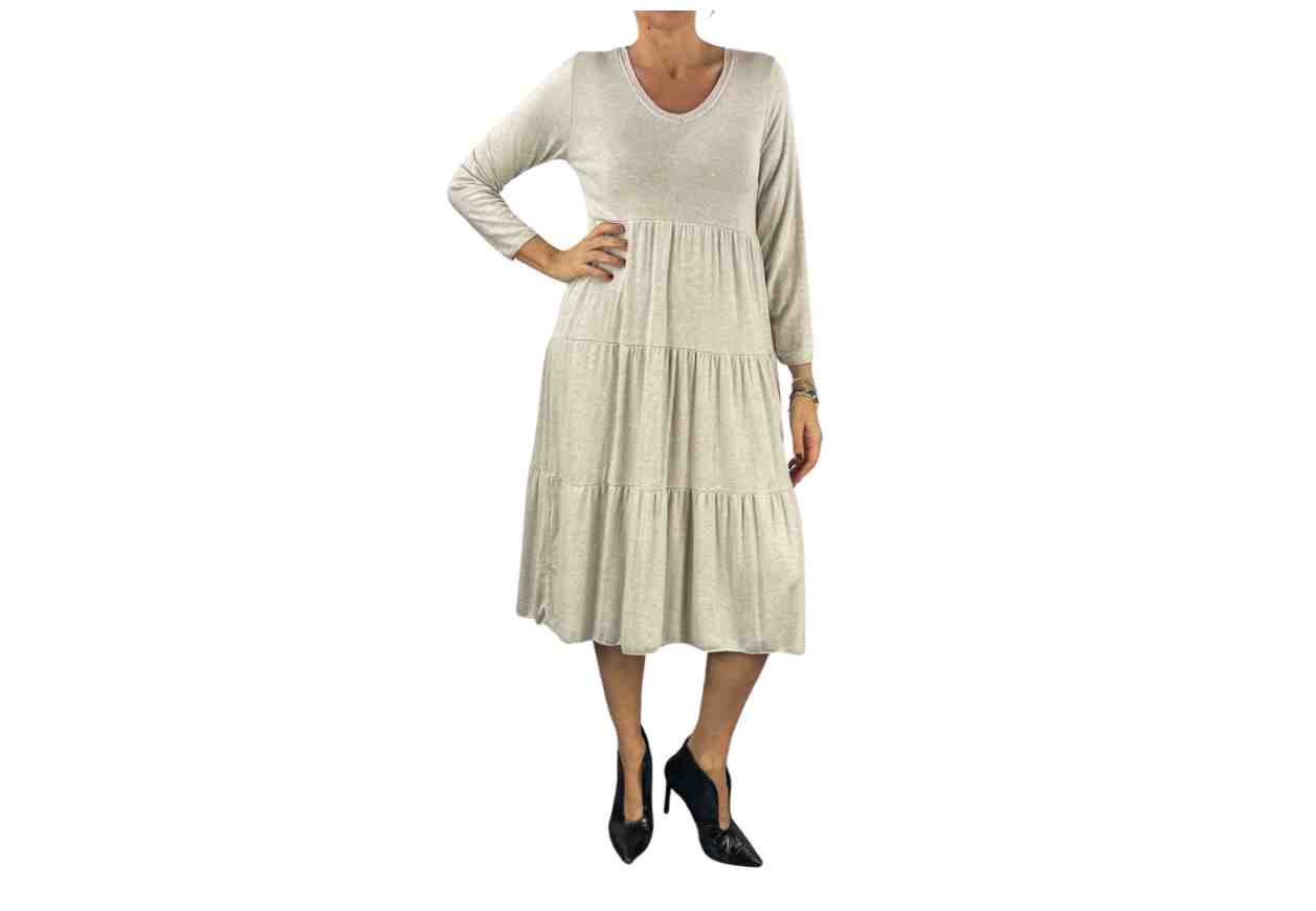 RENE’ BORDEN Abito a balze in tinta unita con scollo a V e manica lunga.