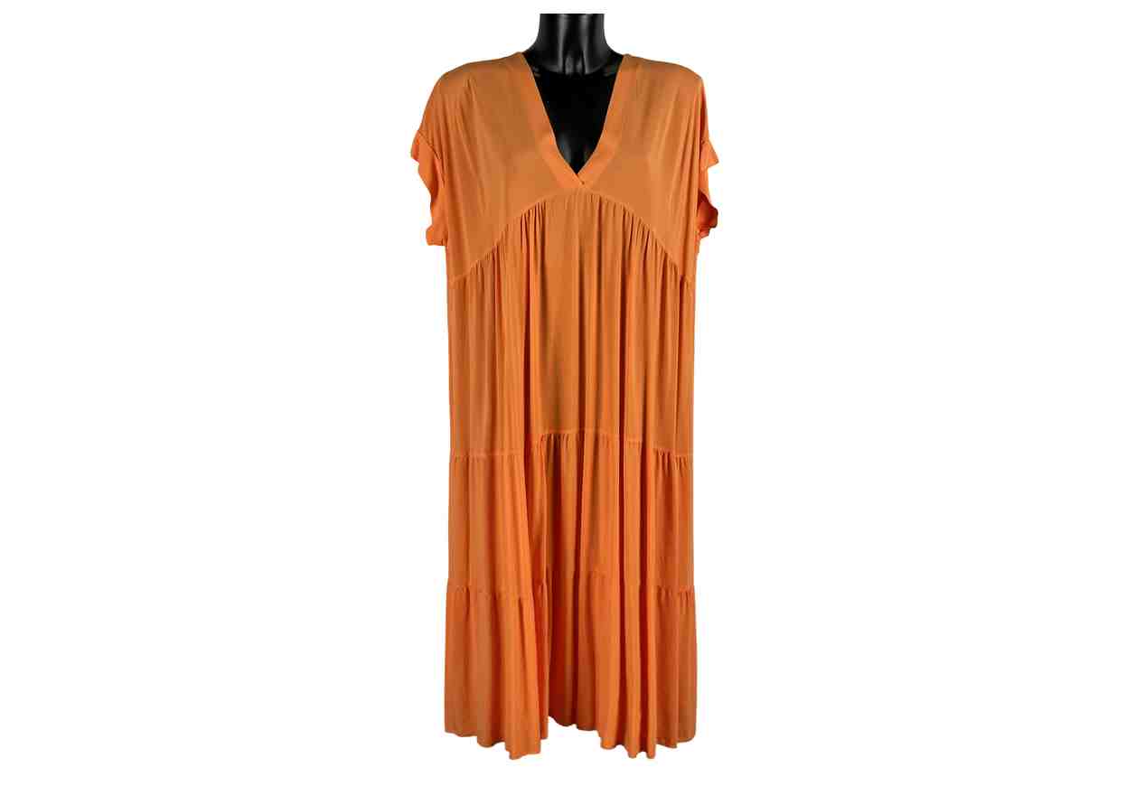 RENE’ BORDEN Abito a balze in tinta unita con scollo a V.