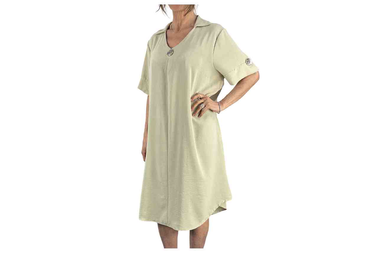 RENE’ BORDEN Abito in tinta unita, bottoni in dettaglio, scollo a V e maniche corte.
