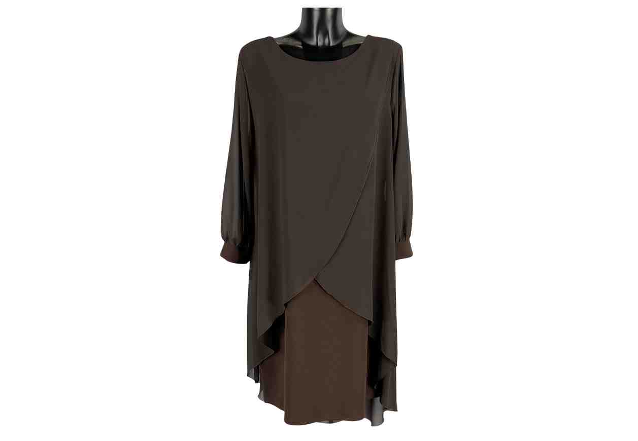 RENE’ BORDEN Abito in voile con motivo frontale a portafoglio e fodera.
