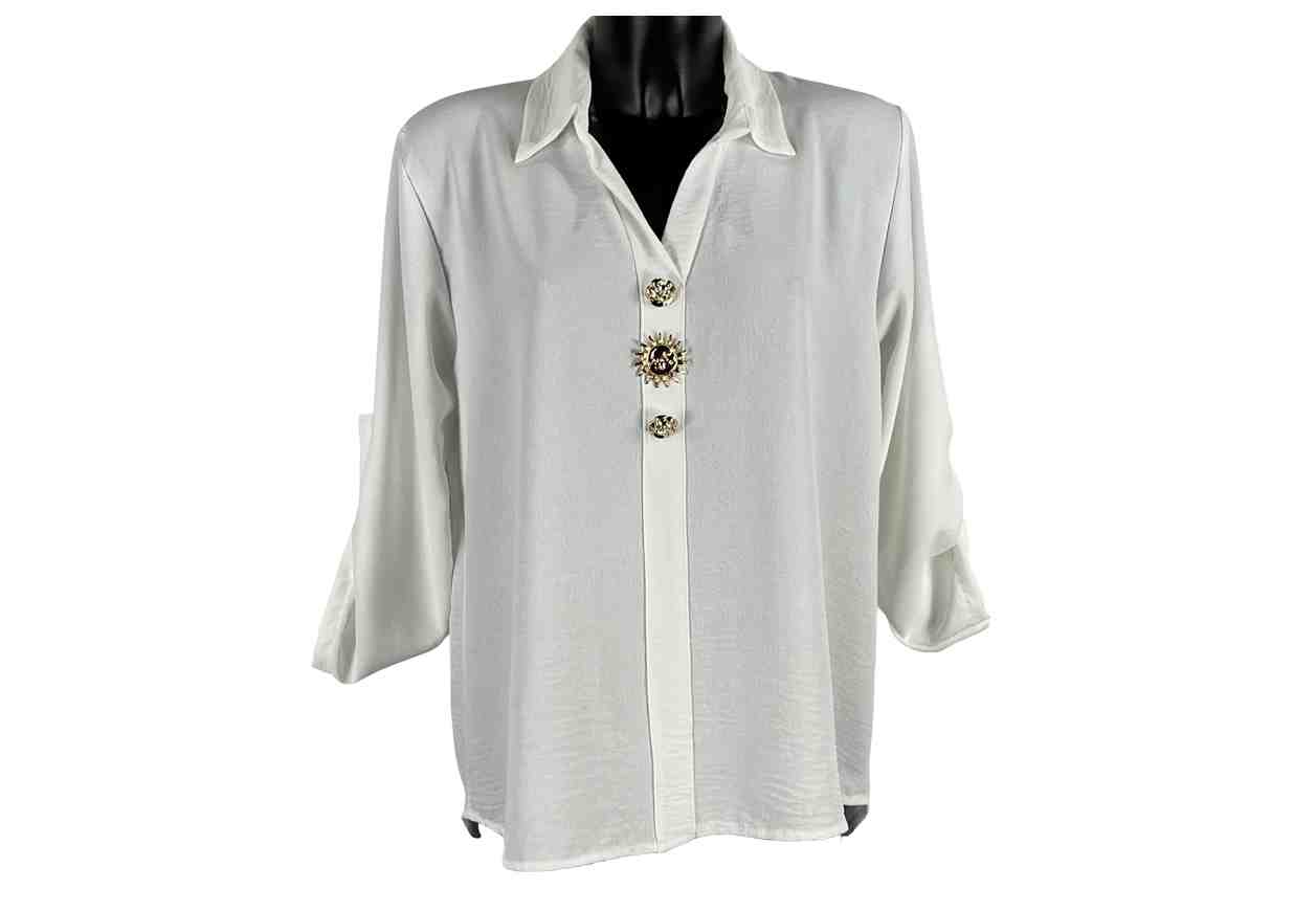 RENE’ BORDEN Blusa con spilla sole in dettaglio, maniche regolabili