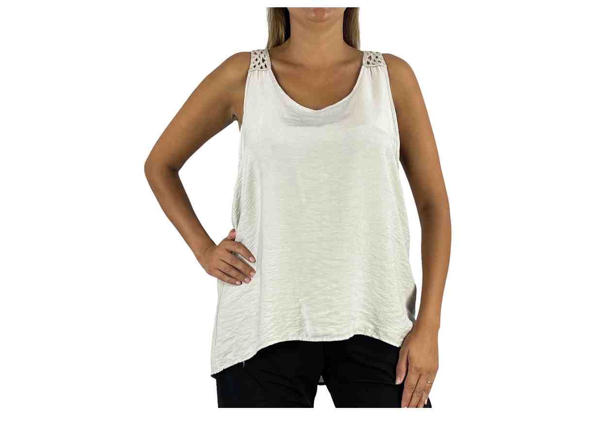 RENE’ BORDEN Canotta con motivo ricamato sul retro, doppia lunghezza.