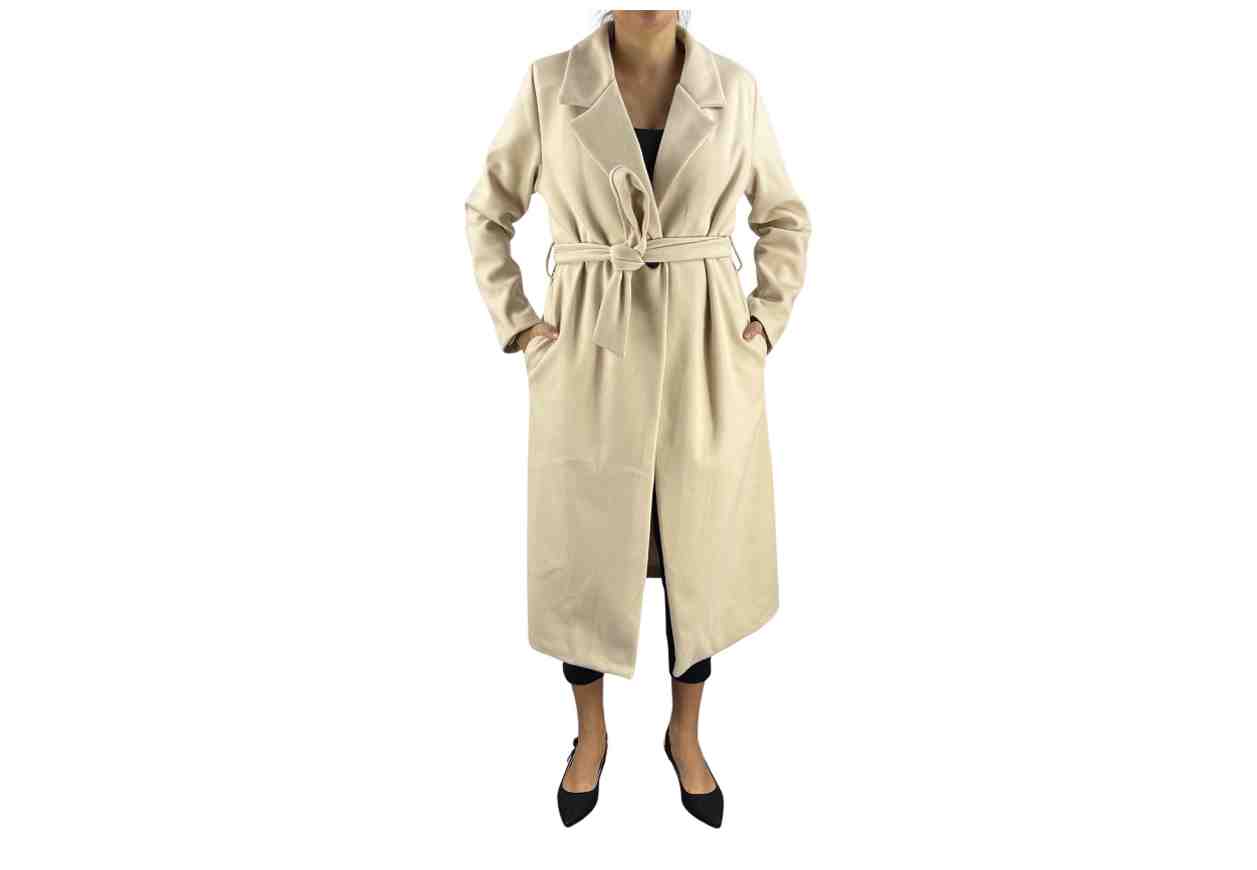 RENE’ BORDEN Cappotto in tinta unita, collo rever, tasche laterali e cintura in vita.