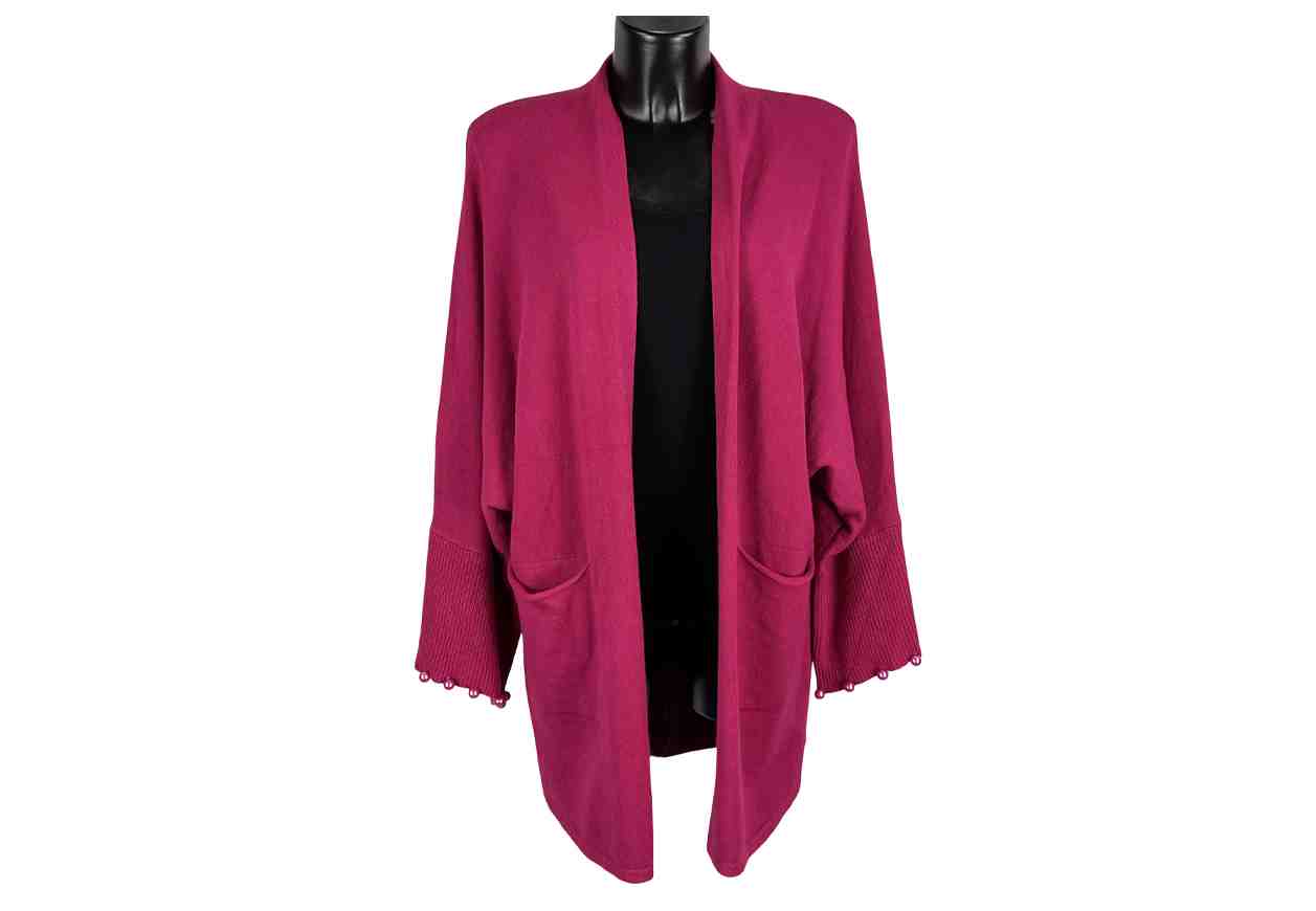 RENE' BORDEN Cardigan aperto in tinta unita con perle su maniche lunghe, tasche frontali.