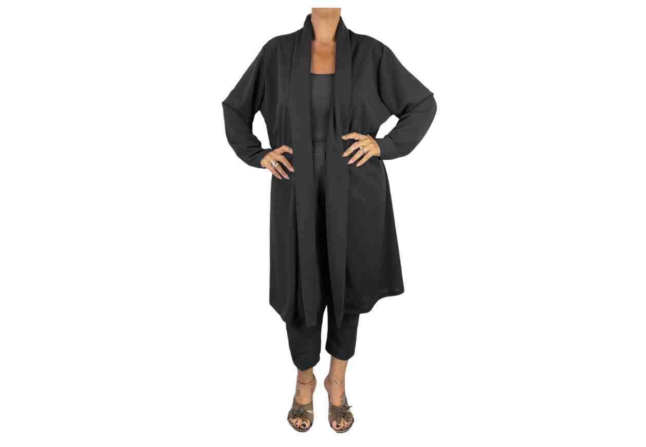 RENE’ BORDEN Cardigan lungo aperto in tinta unita.
