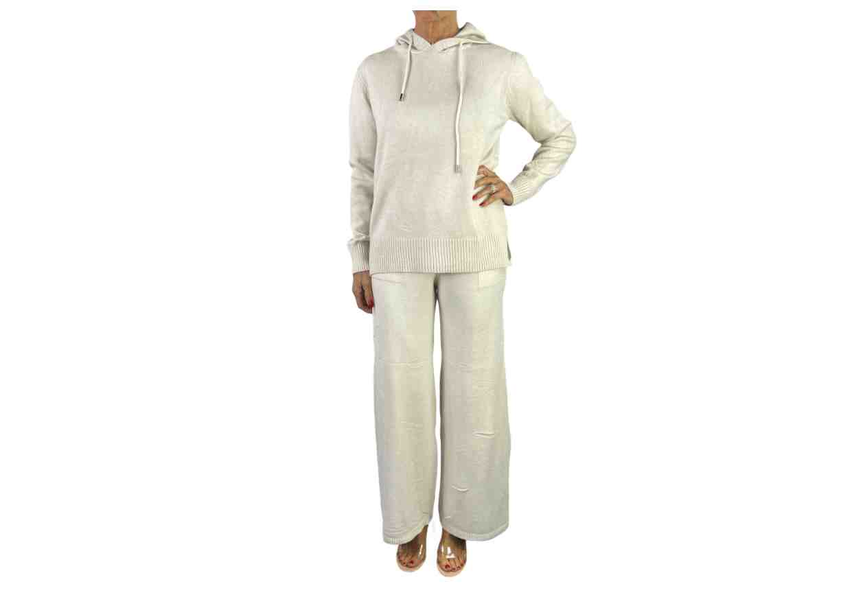 RENE' BORDEN Completo in maglia in tinta unita: maglia con cappuccio, pantalone con tasche ed elastico in vita.