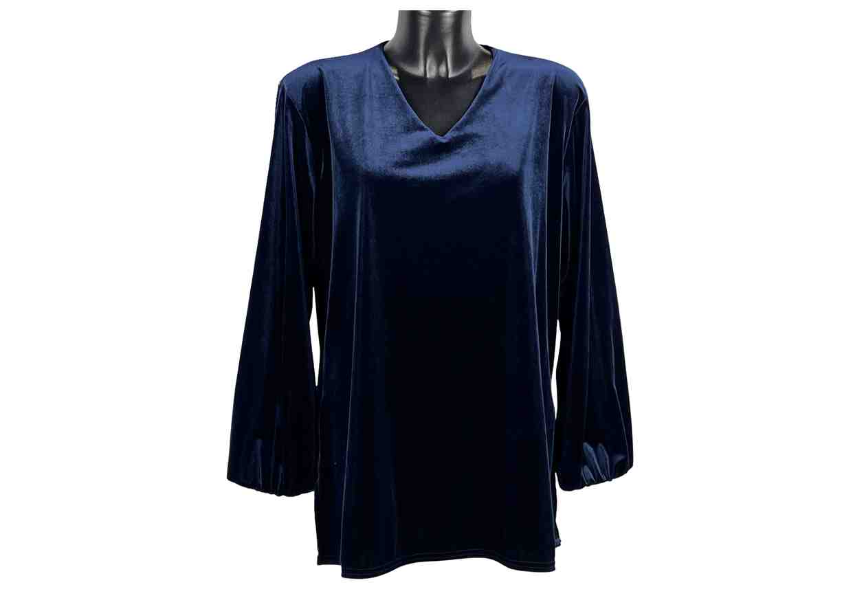 RENE' BORDEN Maglia in simil velluto, spacchi laterali e scollo a V, tinta unita.