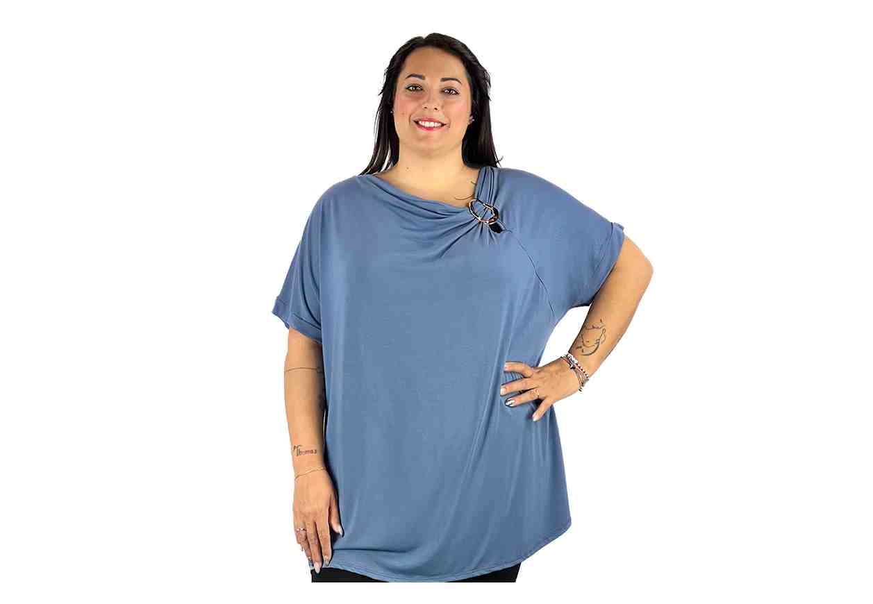 RENE’ BORDEN Maglia in tinta unita con scollo sceso e dettaglio frontale, maniche corte.