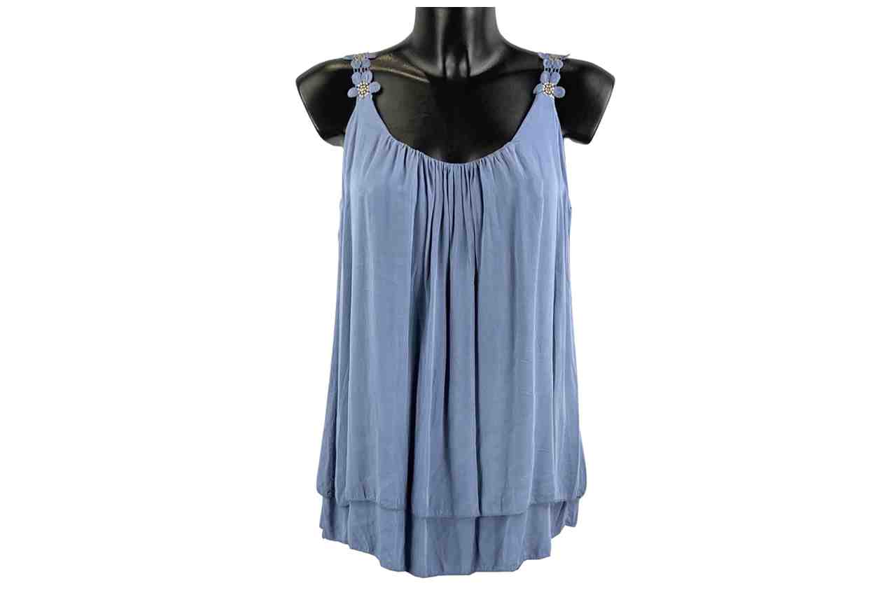 RENE’ BORDEN Maglia smanicata in tinta unita con fiori in macramé sulle spalline.