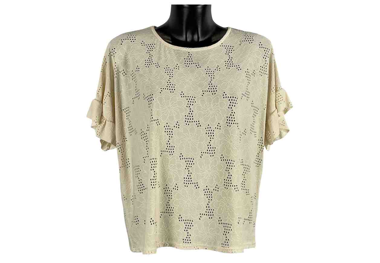 RENE’ BORDEN Maglia traforata con fiori in rilievo, maniche corte.