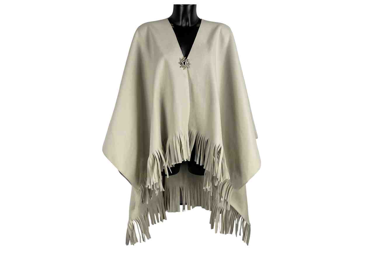RENE’ BORDEN Mantella con frange sul fondo, spilla a sole, tinta unita