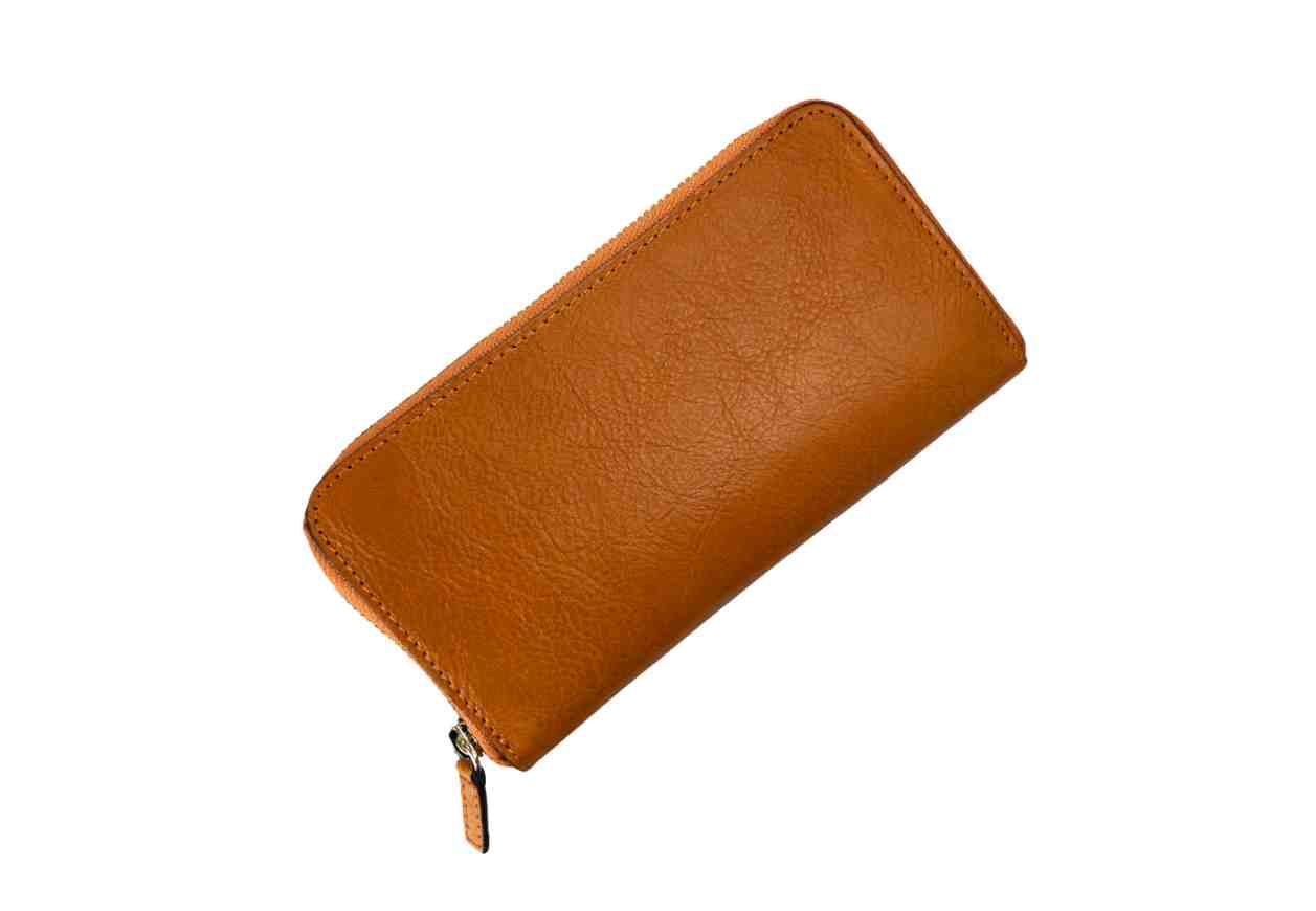 Round zip in 100% pelle, 3 scomparti interni e tasca con zip.