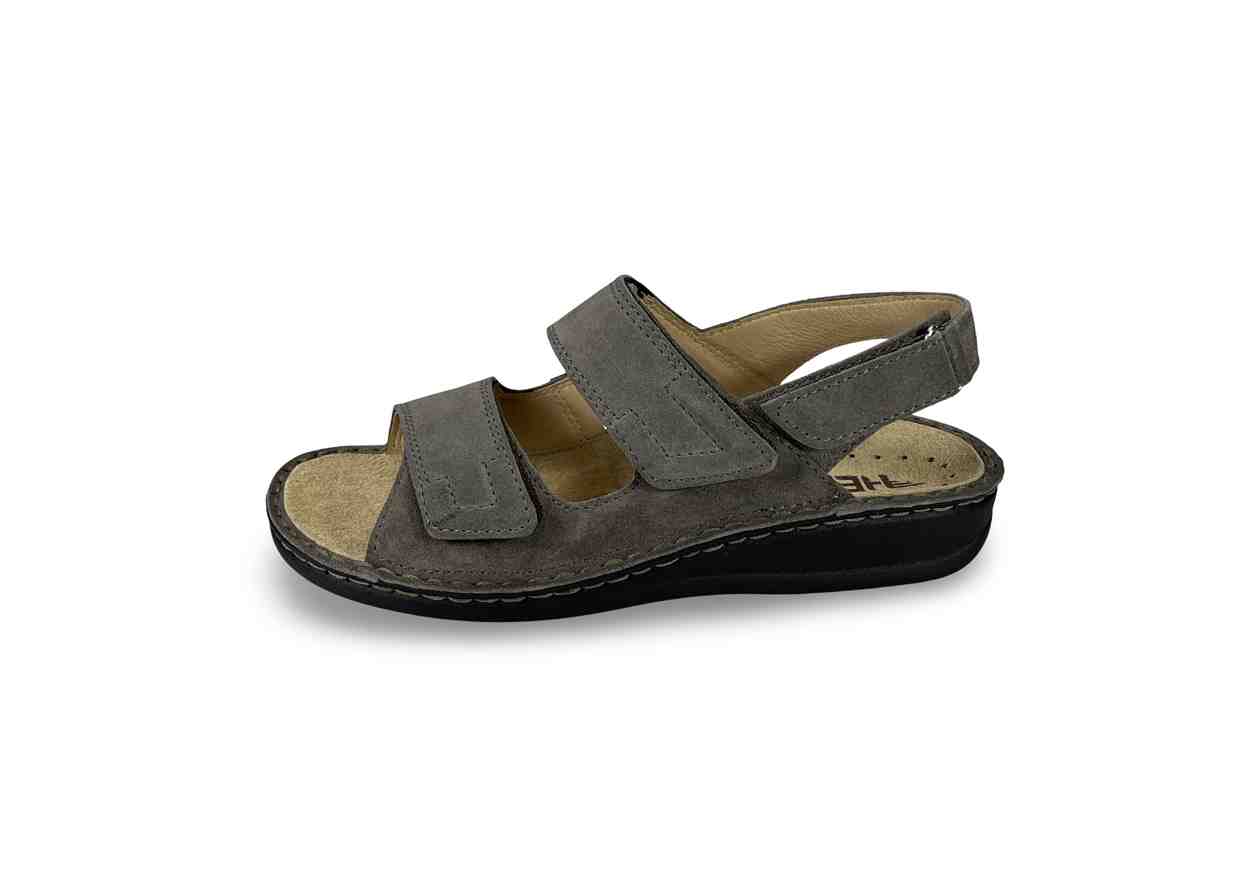 Sabot uomo in 100% camoscio con chiusura a tallone e velcro regolabile. alzata 3 cm.