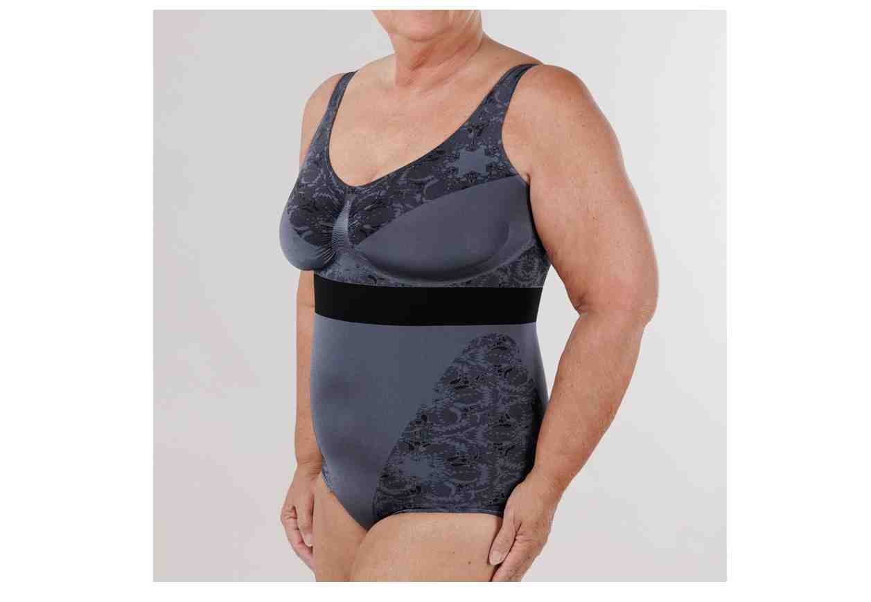 Fattore di supporto 2, design forma visivamente una vita stretta, zona PU nella zona del busto per un migliore sostegno, taglio alto forma breve per uno stomaco piatto, cinghie larghe per più comfort