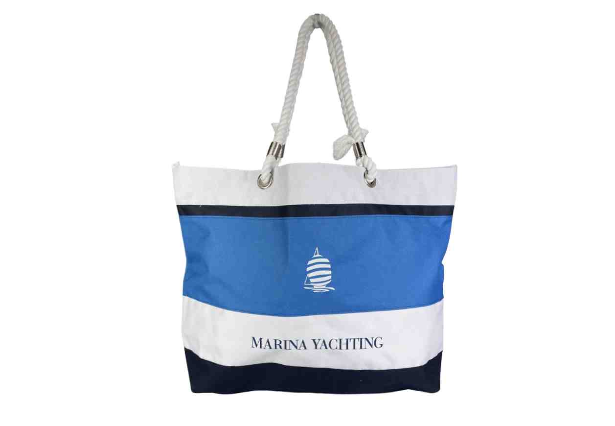 Shopper in 100% poliestere cerato con ampi manici in corda.