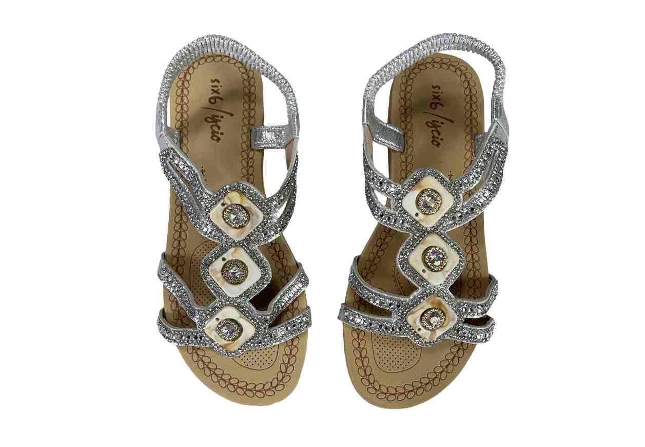 SIX6 LISCIO Sandalo in ecopelle con strass in dettaglio